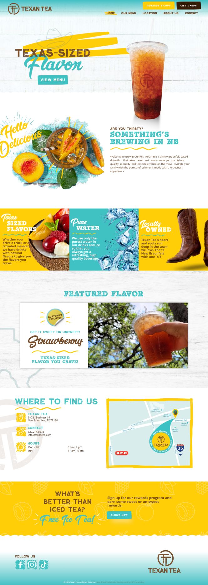 Texan Tea, a locally loved drive thru tea business in New Braunfels, partnered with NBTX Marketing to elevate their digital presence through a custom built website and ongoing social media management.